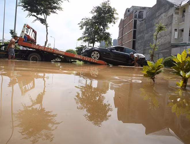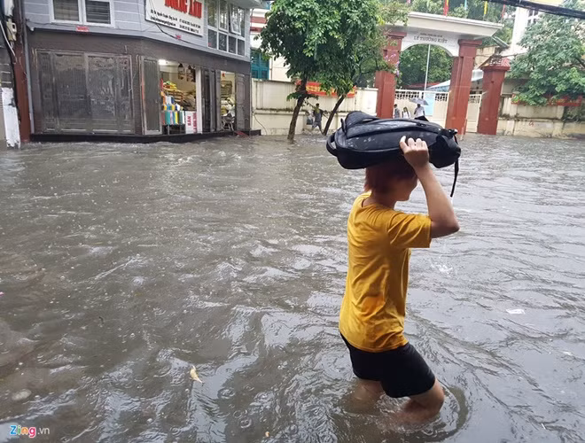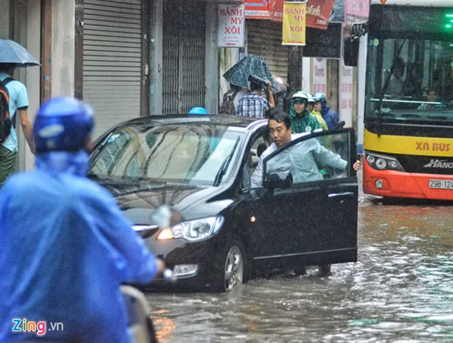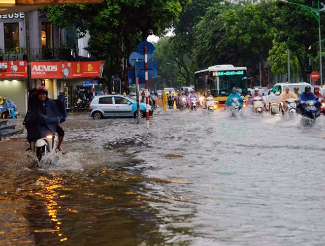 [ẢNH] Hà Nội: Phố thành "sông" sau cơn mưa lớn