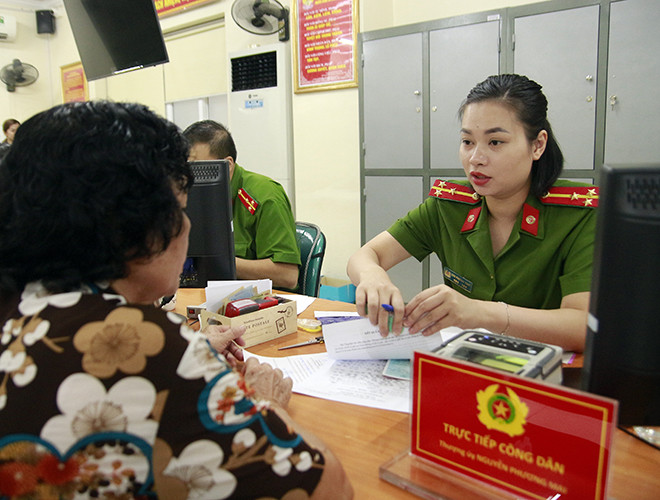 [Ảnh] Nữ Công an Thủ đô vui tươi, tình nguyện phục vụ nhân dân trong Chủ Nhật