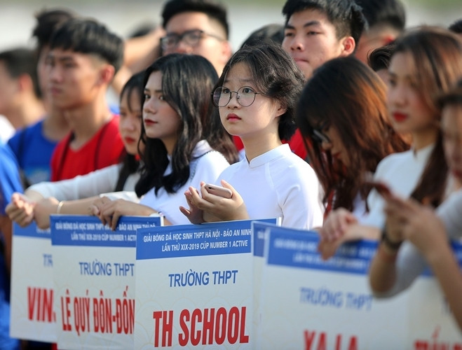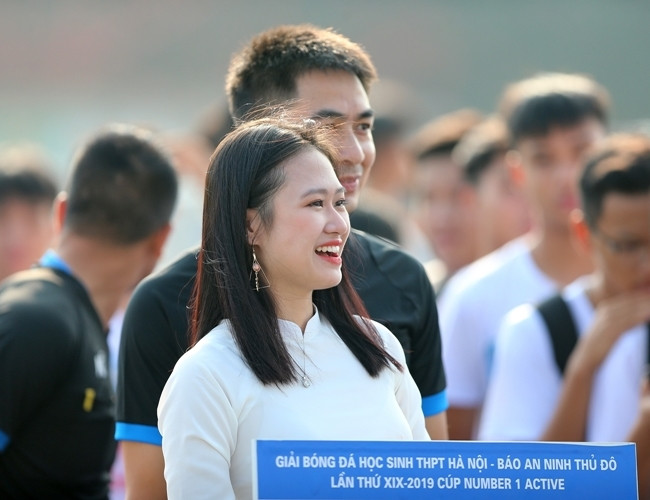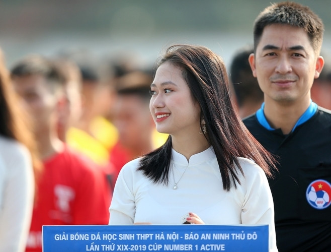 ANTD.VN - Những cô gái cầm biển tên trường tại Lễ khai mạc Giải bóng đá học sinh THPT Hà Nội - Báo ANTĐ lần thứ XIX-2019 Cúp Number 1 Active đã khiến không ít CĐV xao xuyến với vẻ đẹp mộc mạc, trong sáng và thuần khiết.