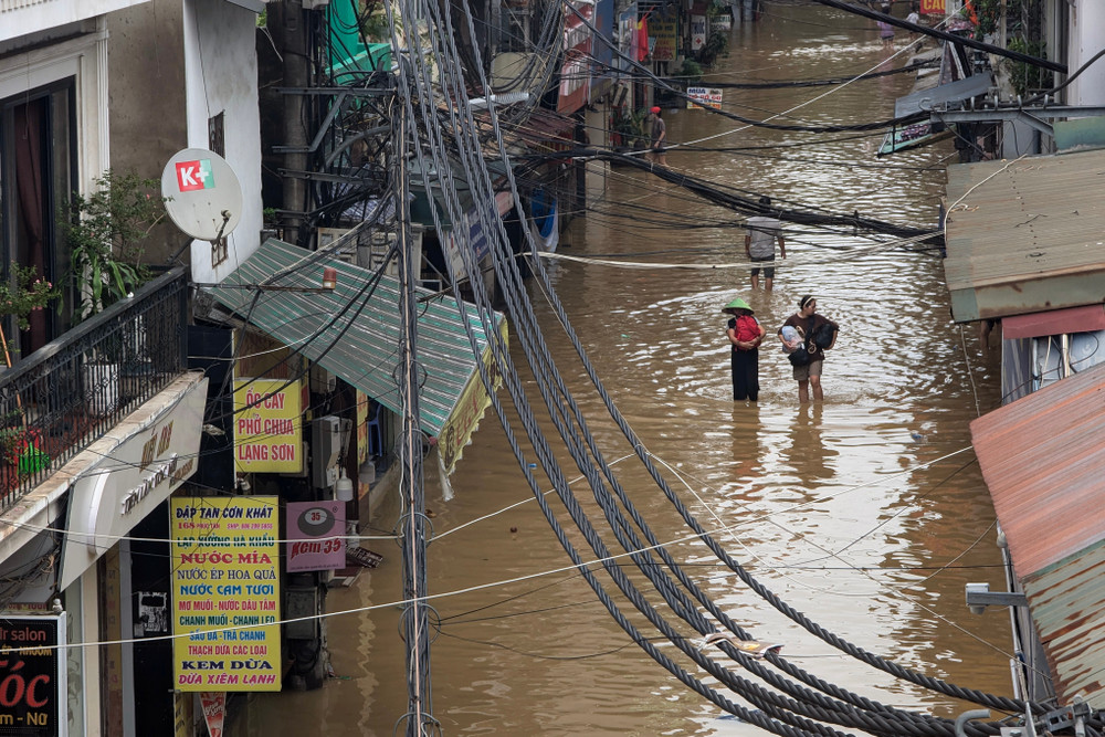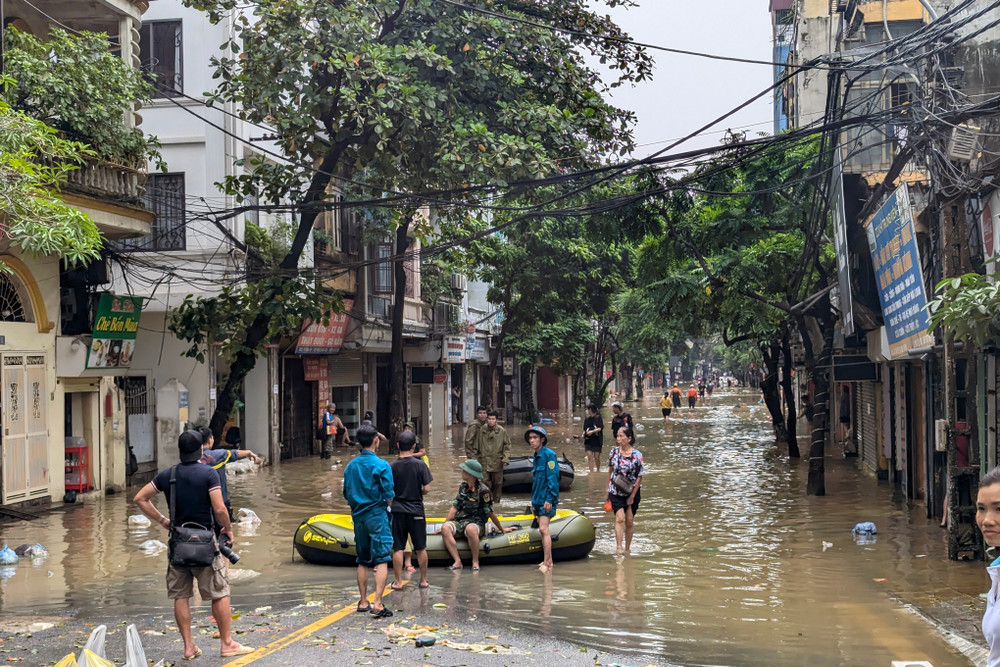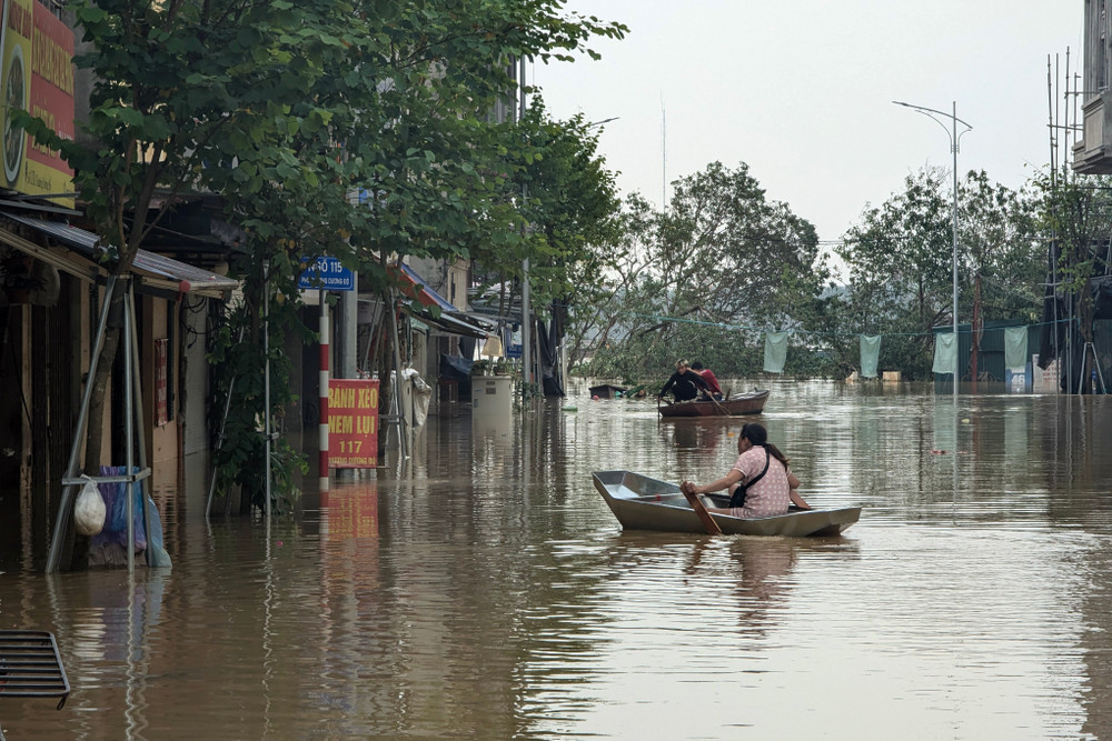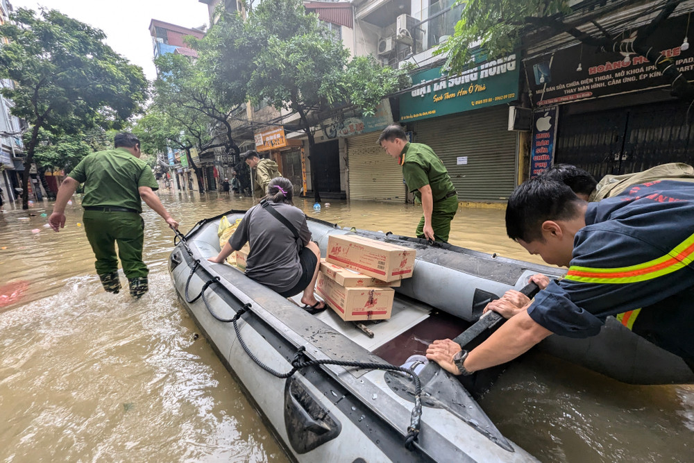 Ảnh: Người dân vùng ngập do nước sông Hồng lên cao ở Hà Nội được di dời đến nơi an toàn