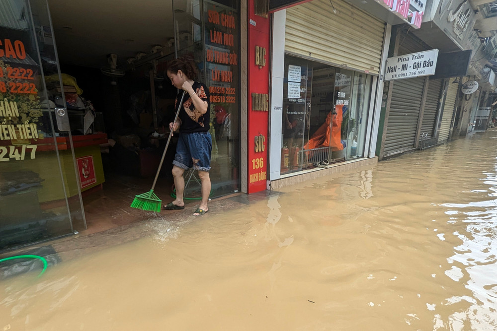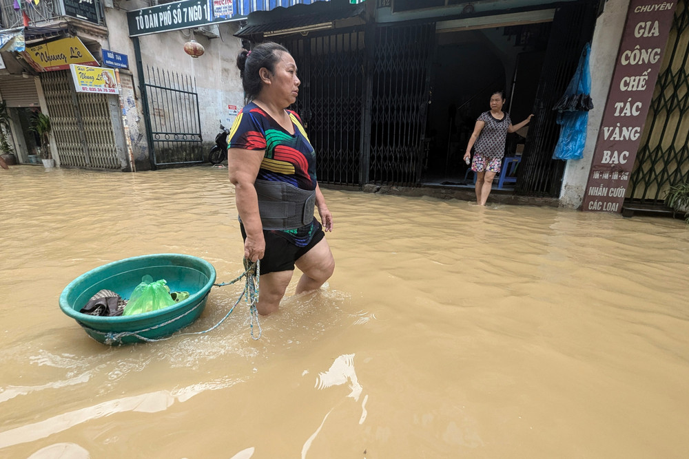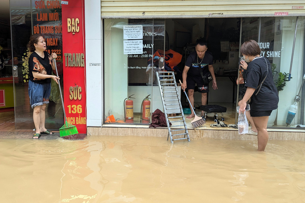 Ảnh: Nước lũ sông Hồng bắt đầu rút chậm, người dân Hà Nội chuẩn bị dọn dẹp nhà cửa