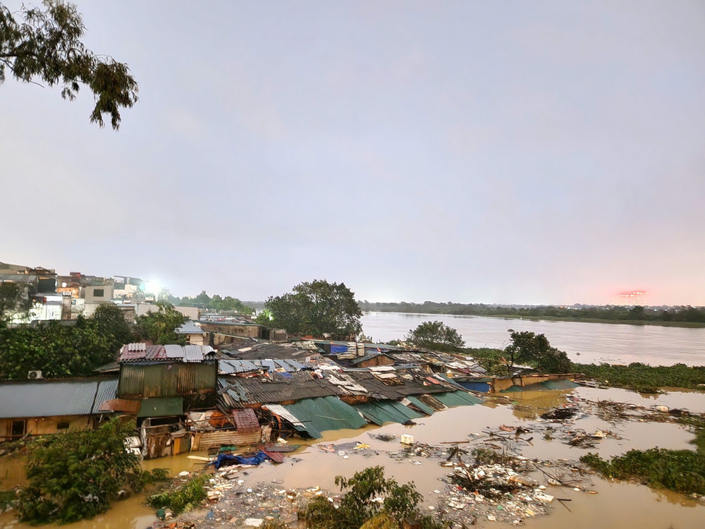 Ảnh: Nước lũ sông Hồng ở Long Biên vượt báo động 2, nước ngập tới mái nhà dân vùng bãi