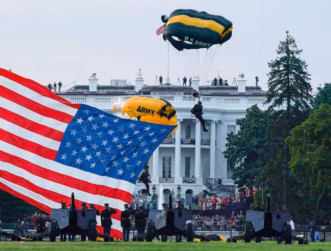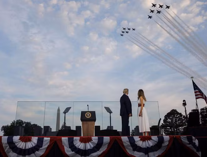 ANTD.VN - Chào mừng Ngày Quốc khánh 4-7, người dân Mỹ đã được chứng kiến các màn diễu hành với sự tham gia của các máy bay chiến đấu, máy bay ném bom, trực thăng và một số khí tài hiện đại khác. Các hoạt động kỷ niệm này diễn ra trong bối cảnh số ca nhiễm Covid-19 vẫn tăng cao đột biến và các cuộc biểu tình vẫn chưa ngớt trên toàn nước Mỹ.