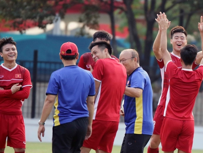 ANTD.VN - HLV Park Hang-seo cho các học trò xả stress hết cỡ trước cuộc đối đầu căng thẳng với Syria tại tứ kết môn bóng đá nam ASIAD 2018 vào ngày mai, 27-8.