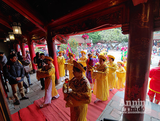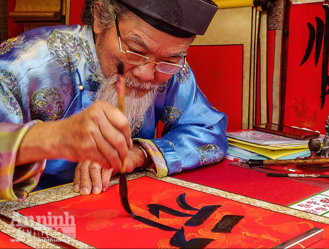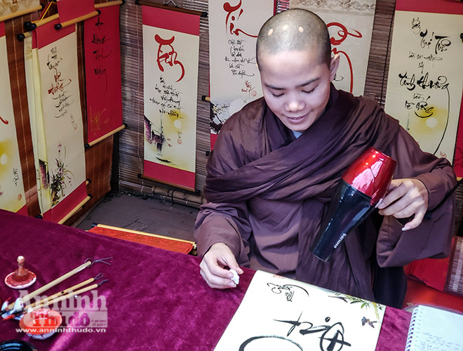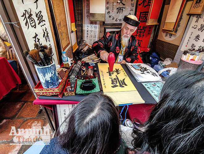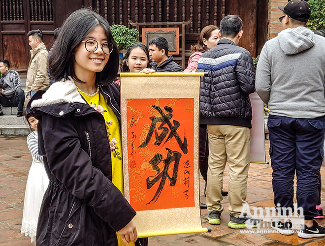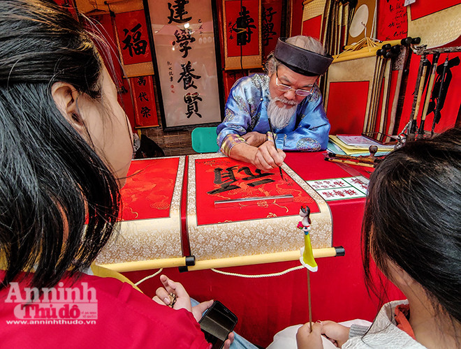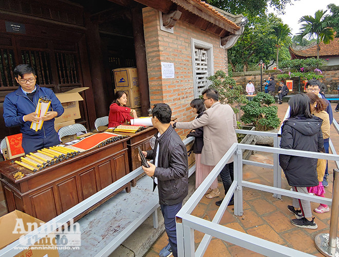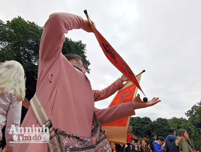 ANTD.VN - Mùng Hai Tết, Văn Miếu – Quốc Tử Giám (Hà Nội) đón hàng ngàn lượt người tới xin chữ đầu năm với hy vọng năm mới mang may mắn và an khang về với gia đình mình. Để nhanh chóng, thuận tiện cho việc xin chữ, nhiều "ông đồ", "bà đồ" chuẩn bị sẵn máy sấy phục vụ người xin chữ đầu năm...