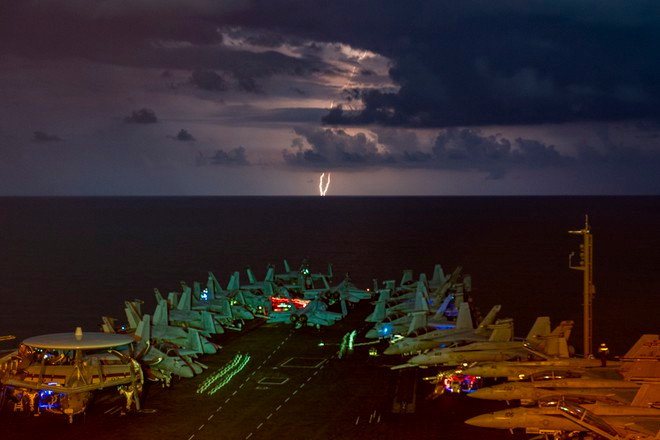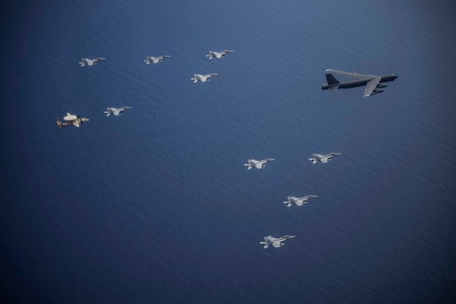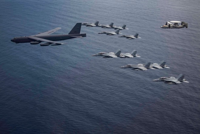 [ẢNH] "Pháo đài bay" B-52 hội ngộ với 2 tàu sân bay Mỹ trong tập trận ở Biển Đông