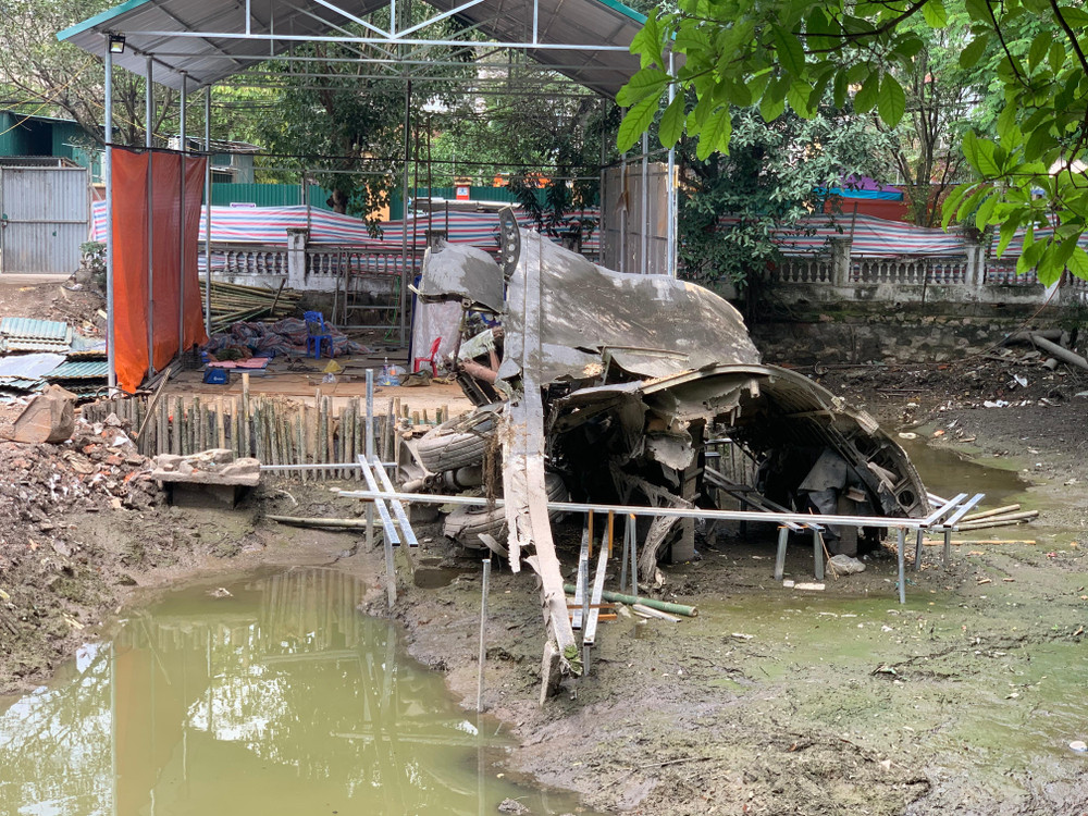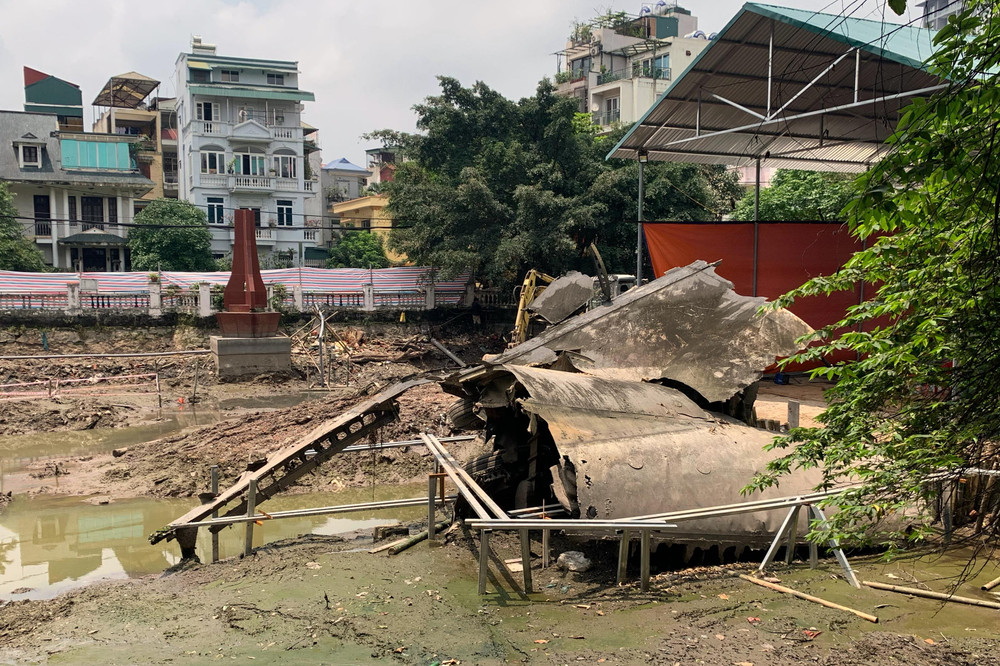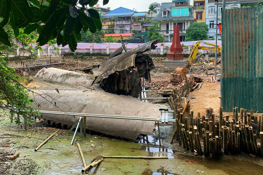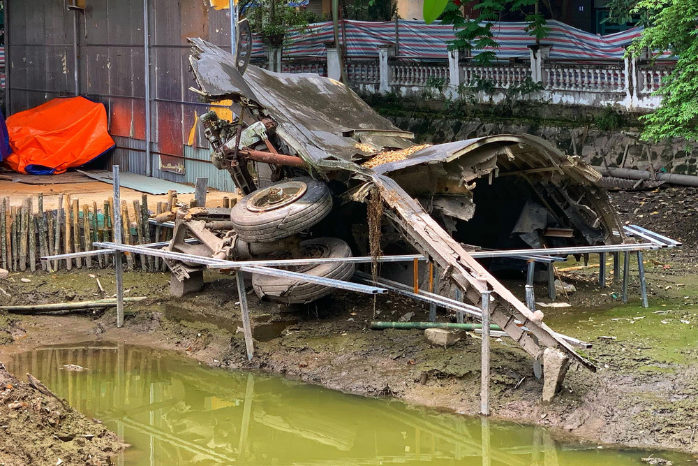 ANTD.VN - Bình thường mảnh xác B52 nằm lập lờ nửa nổi nửa chìm. Hiện tại, khi hồ Hữu Tiệp được rút cạn nước thì cả mảnh xác "pháo đài bay" đã lộ diện hoàn toàn.