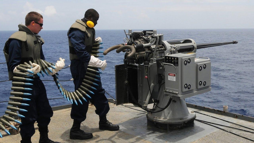 ANTD.VN - Một trong những vũ khí tiêu chuẩn trên các chiến hạm của Mỹ chính là khẩu pháo bắn nhanh Mk38 cỡ nòng 25mm. Đây là vũ khí ở tuyến phòng thủ tầm cực gần để chống lại các xuồng cao tốt của đối phương.