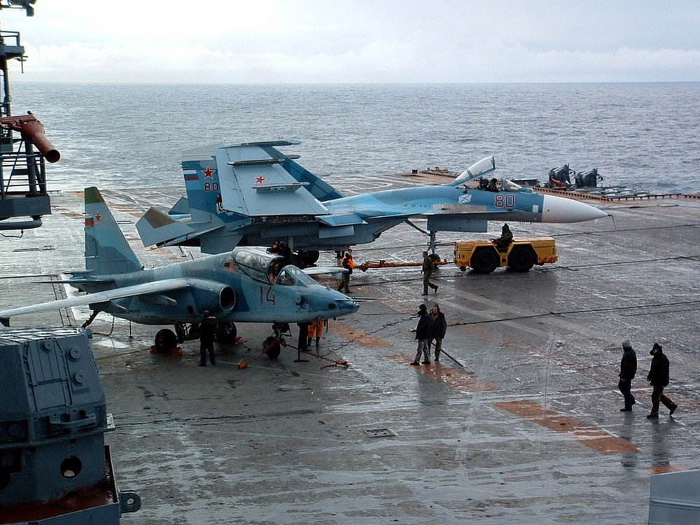 ANTD.VN - Bộ Quốc phòng Nga vừa ra tuyên bố cho biết công tác huấn luyện cất hạ cánh trên boong tàu sân bay Đô đốc Kuznetsov đối với phi công điều khiển chiến đấu cơ Su-33 và Su-25UTG sẽ được tiếp diễn trong năm 2020.