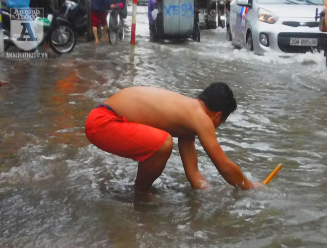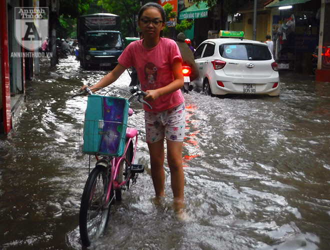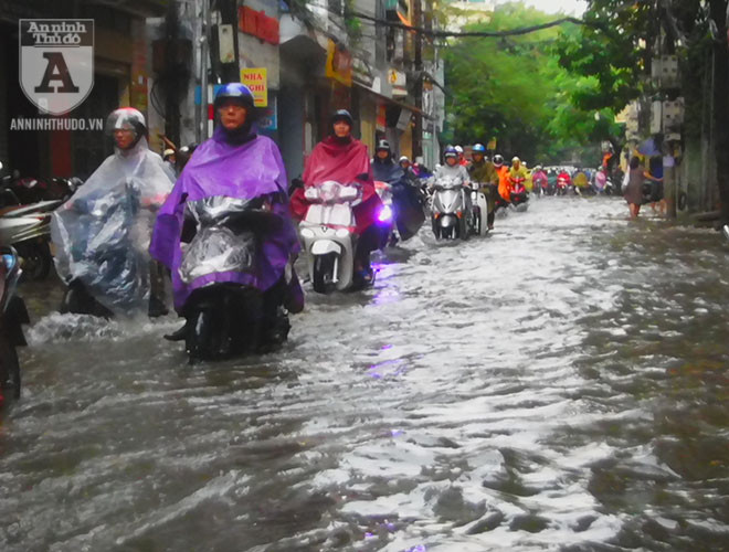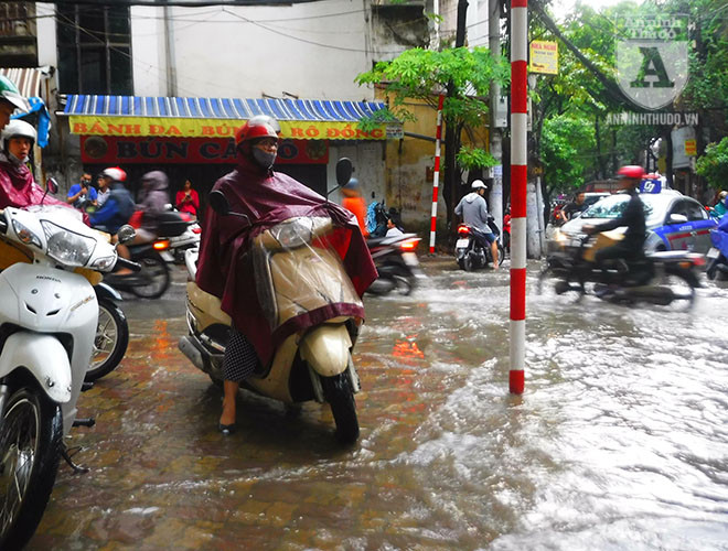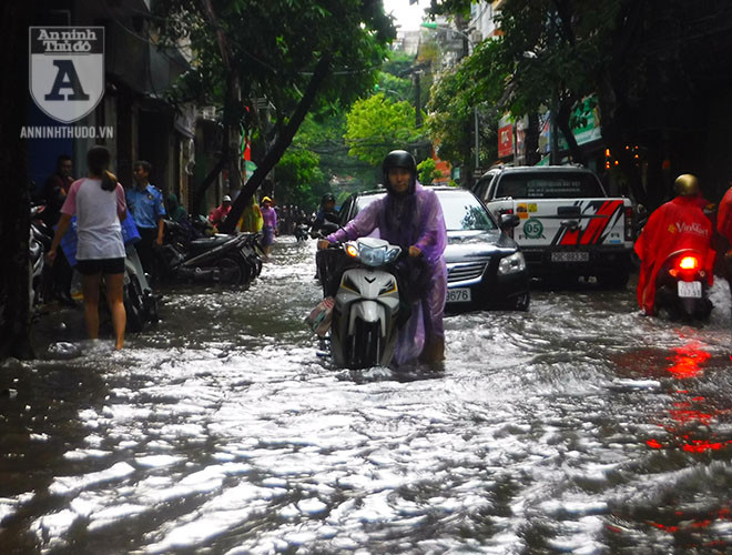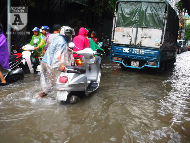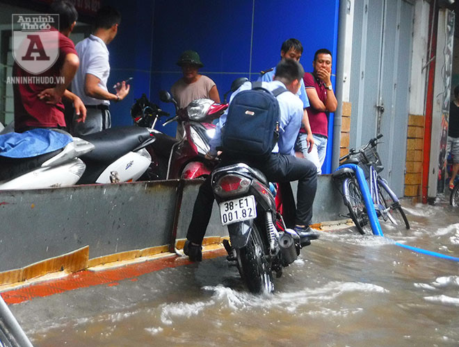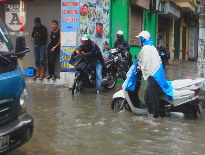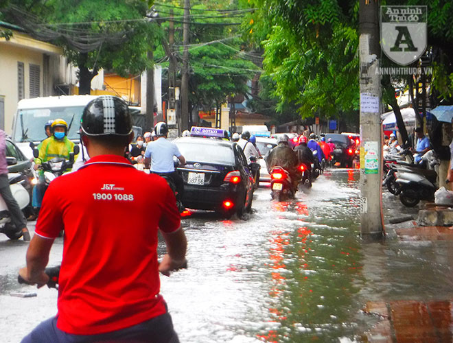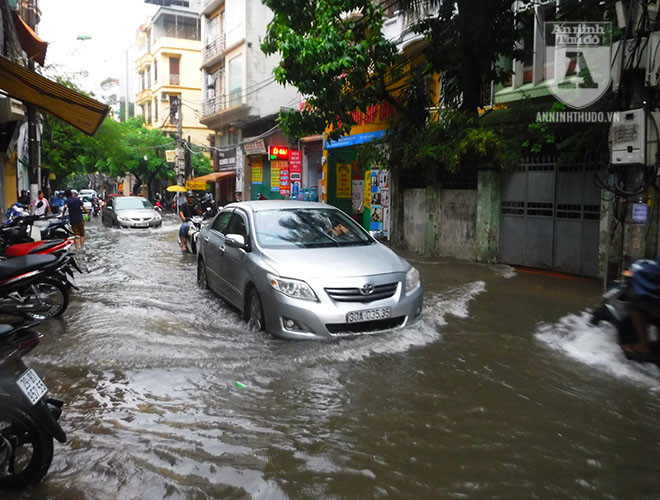 ANTD.VN - Khoảng 16h30 ngày 30-7, xảy ra mưa lớn, khiến tuyến phố Nguyễn Ngọc Nại (phường Khương Mai, quận Thanh Xuân, Hà Nội) bị ngập cục bộ, nhiều phương tiện giao thông khi di chuyển qua đây đã bị chết máy.