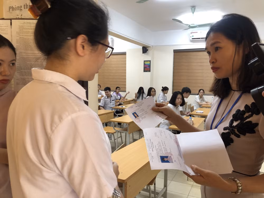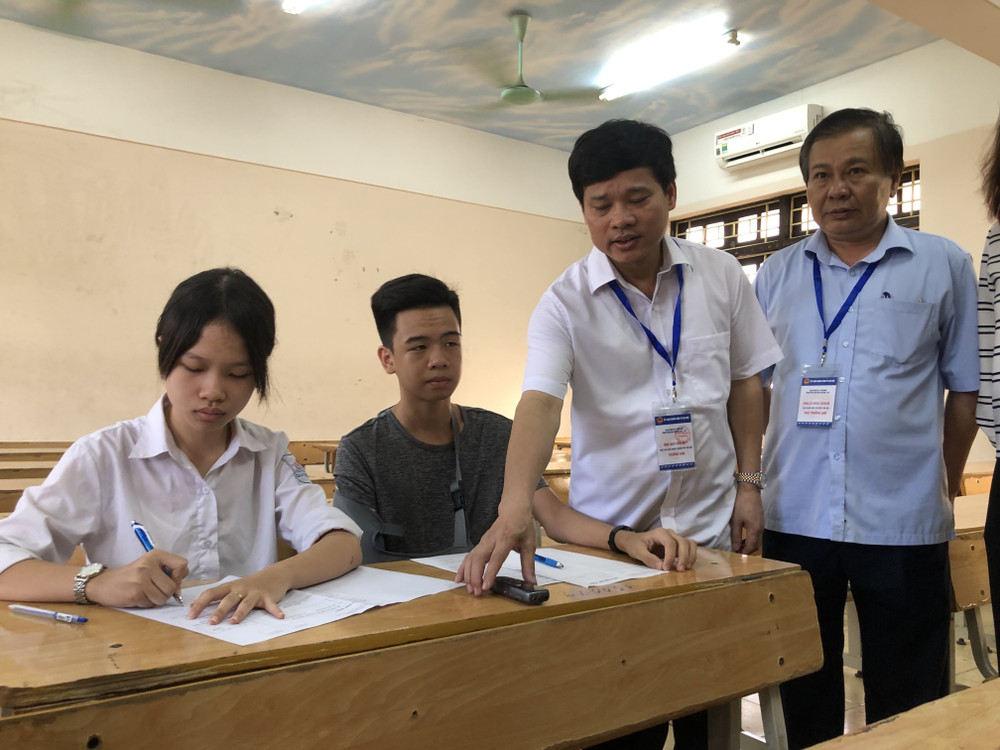 [Ảnh] Phó Chủ tịch UBND TP Hà Nội động viên thí sinh gãy tay được bố trí thi riêng có người chép hộ
