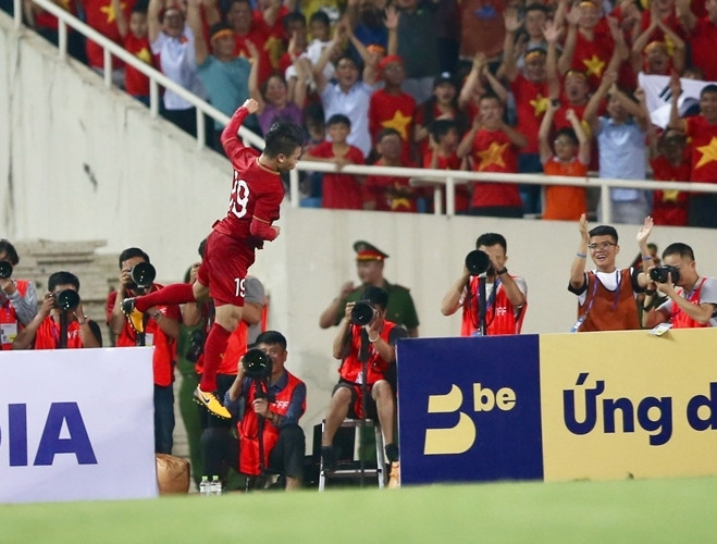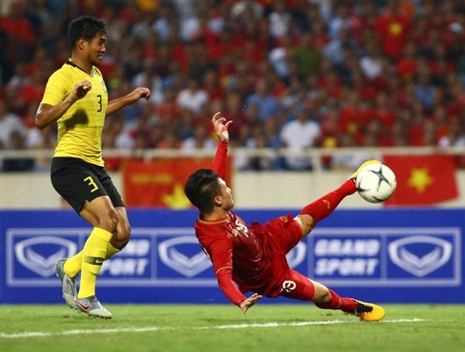 ANTD.VN - Sau khi ghi bàn mở tỉ số vào lưới Malaysia, Quang Hải làm động tác ăn mừng khiến người hâm mộ liên tưởng đến siêu sao Cristiano Ronaldo.