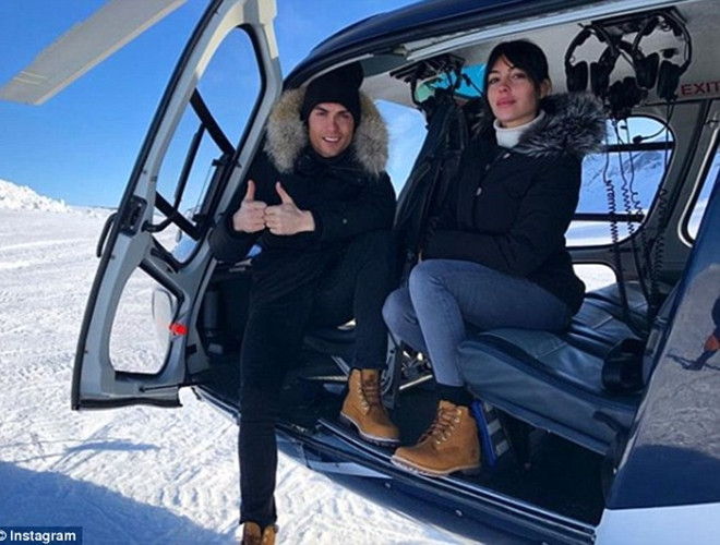 [ẢNH] Ronaldo khoái chí cùng bồ xinh cưỡi trực thăng, du hí núi tuyết