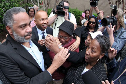 Anthony Ray Hinton được gia đình chào đón sau khi được minh oan và ra khỏi nhà tù hạt Jefferson ở Birmingham, bang Alabama, Mỹ
