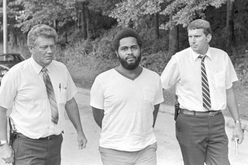 Anthony Ray Hinton được Cảnh sát trưởng hạt Jefferson dẫn giải trong vụ án giết người năm 1986 tại Birmingham, Alabama