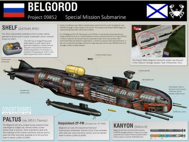 [ẢNH] Siêu ngư lôi hạt nhân Poseidon bị bóc mẽ chỉ mang được đầu đạn bằng...1/50 công bố
