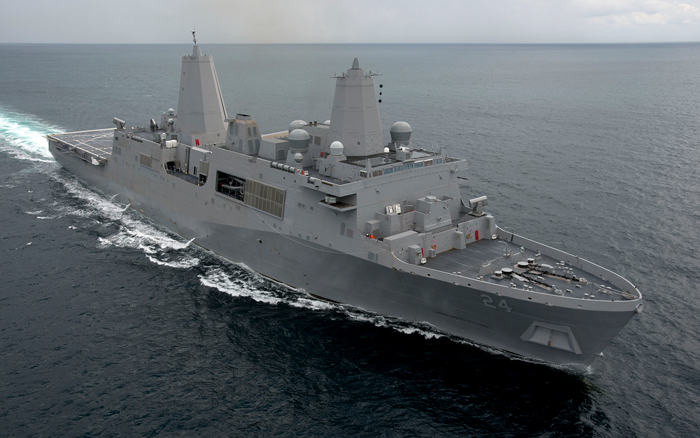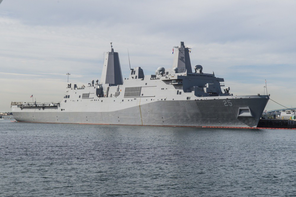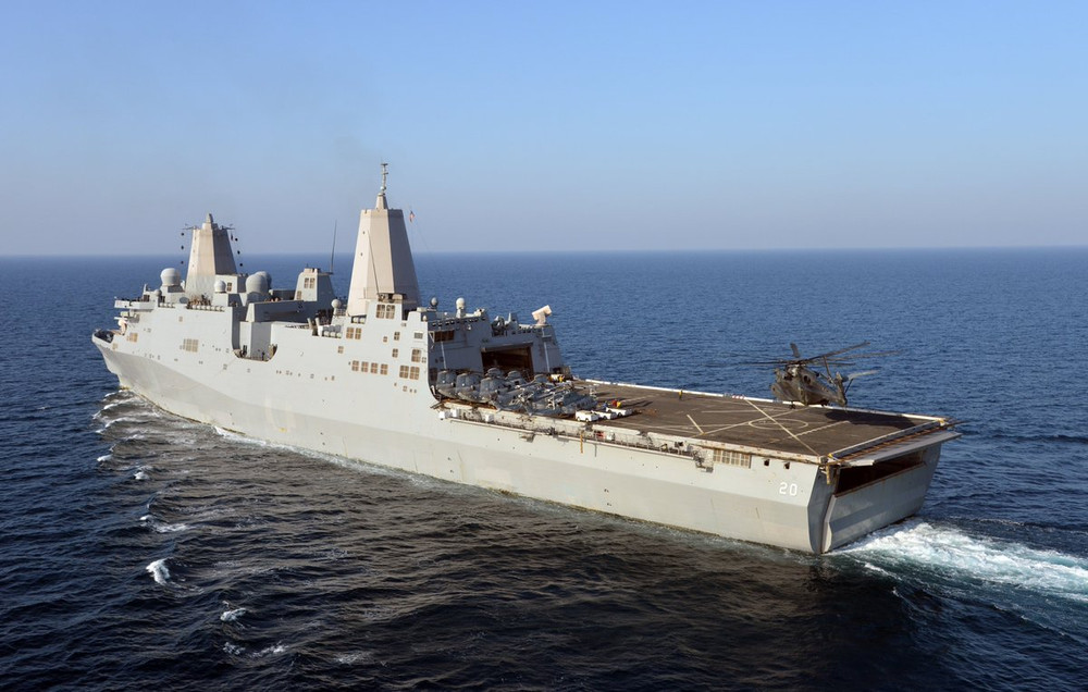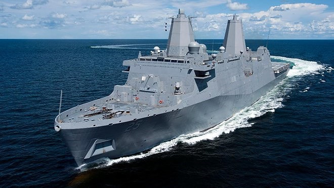 ANTD.VN - Tàu đổ bộ khổng lồ USS Green Bay thuộc lớp San Antonio thực hiện hành trình qua eo biển Đài Loan (Trung Quốc) hôm qua 23-8 nhằm thể hiện cam kết của Mỹ với khu vực.
