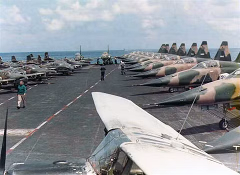 [ẢNH] Siêu tàu sân bay Mỹ rút đi mang theo hơn 100 máy bay VNCH tháng 4-1975