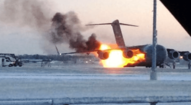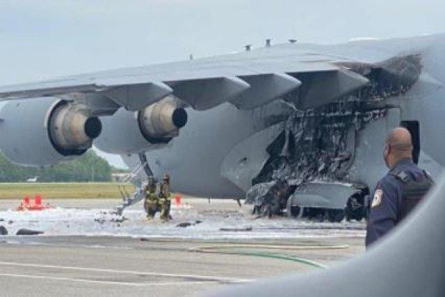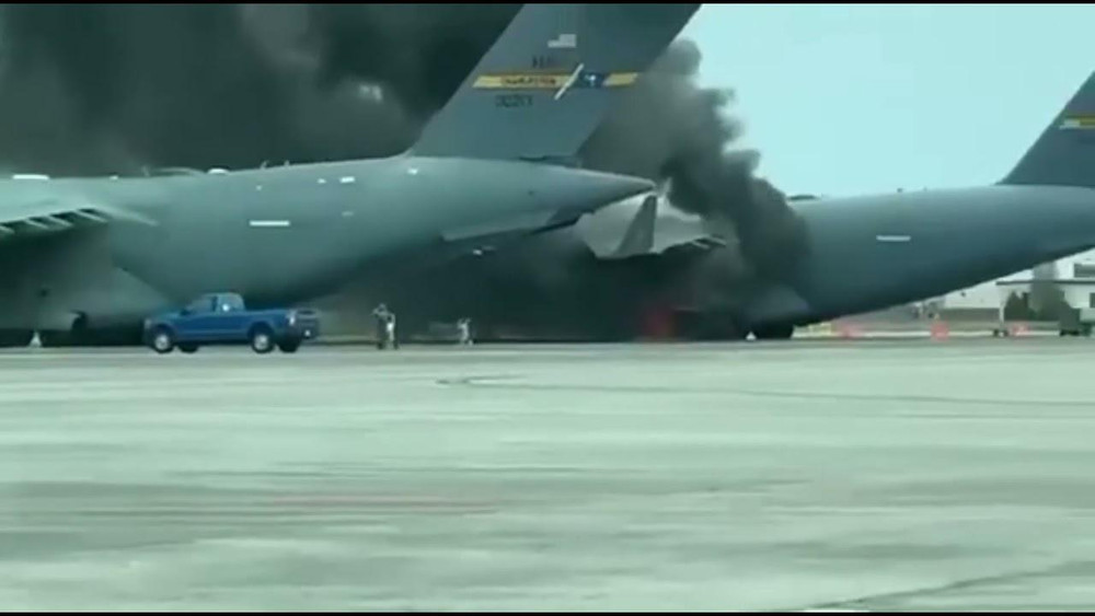 [ẢNH] Siêu vận tải cơ Mỹ bốc cháy ngùn ngụt trên đường băng