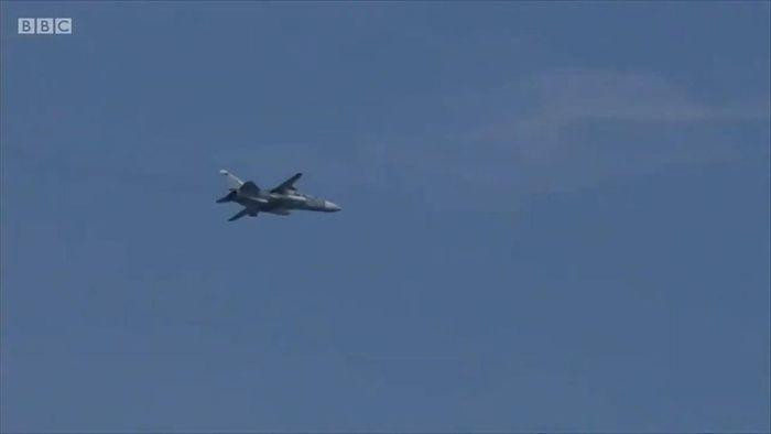 ANTD.VN -  Chiến đấu cơ Su-24 Fencer Nga đã nổ súng cảnh cáo, thậm chí còn chủ đích thả 4 quả bom có ​​sức công phá lớn trên đường đi của khu trục HMS Defender của Anh buộc nó phải đổi hướng đi.