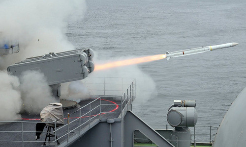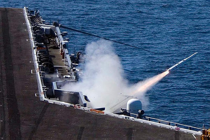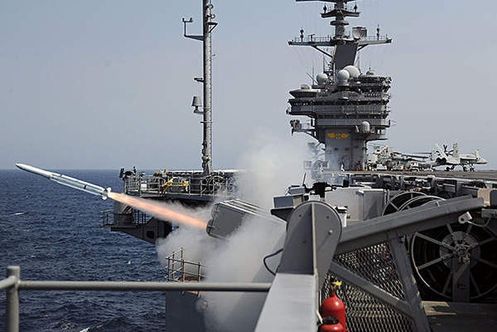 [ẢNH] Tàu sân bay Mỹ phóng tên lửa xé toạc hai tên lửa chống hạm cùng lúc
