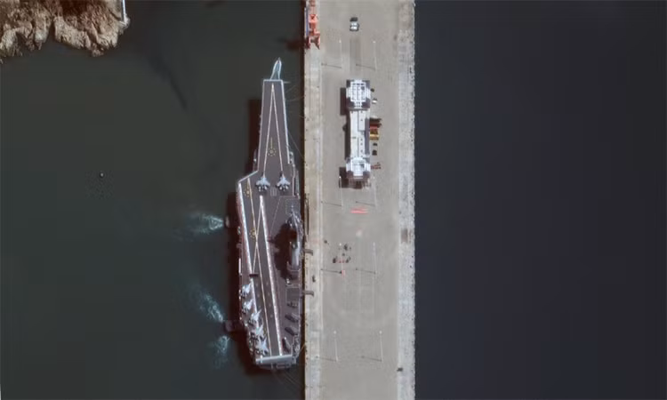 ANTD.VN - Ảnh vệ tinh cho thấy tàu sân bay Type-001A của Trung Quốc bất ngờ neo đậu tại căn cứ Du Lâm ở đảo Hải Nam ngày 19-11. Trên boong tàu có 7 tiêm kích hạm J-15 cùng 4 trực thăng Z-18.