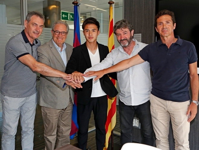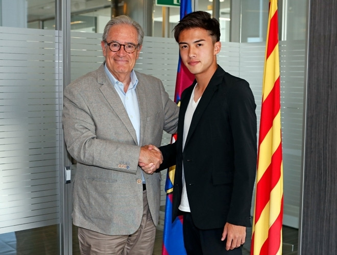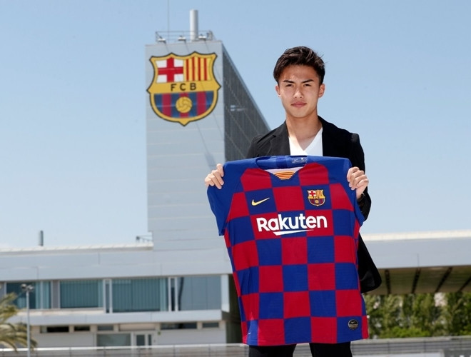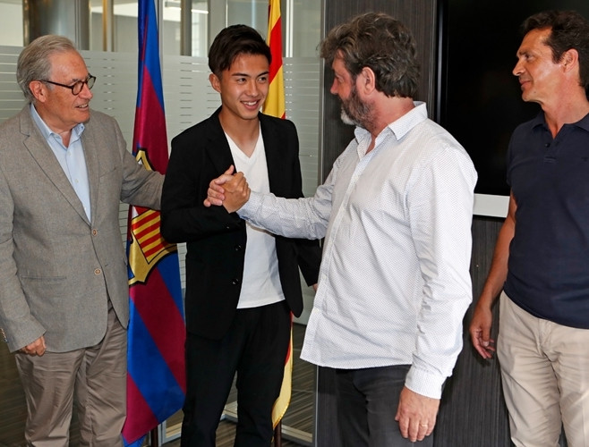 [ẢNH] Thần đồng bóng đá Nhật Bản rạng ngời ra mắt Barca