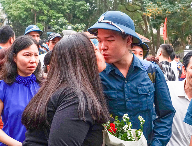 [ẢNH] Thanh niên Hà Nội tạm biệt người thương lên đường nhập ngũ