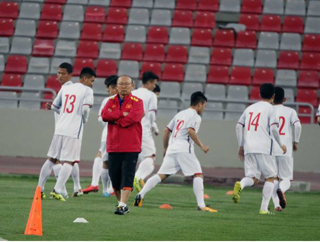 ANTD.VN - Đêm 26-3 (giờ Việt Nam), HLV Park Hang-seo cùng học trò có buổi tập làm quen sân King Abdullah để rèn các miếng chiến thuật nhằm đánh bại đội hình cao to của chủ nhà Jordan.