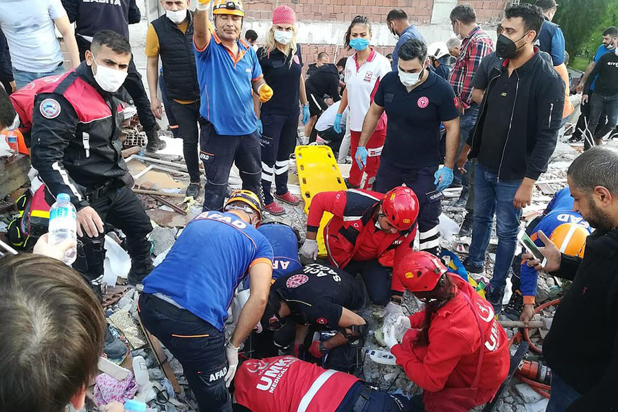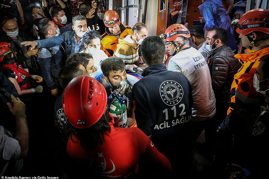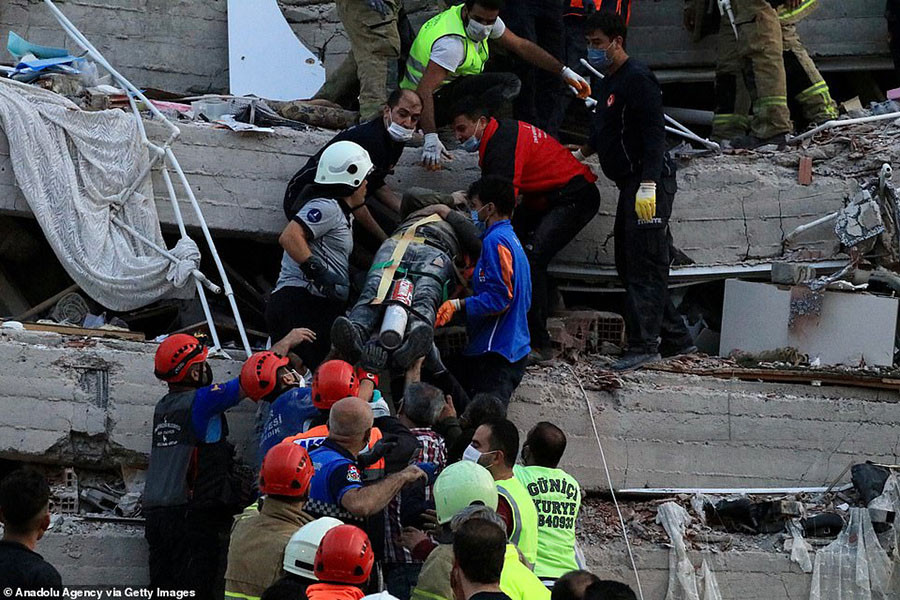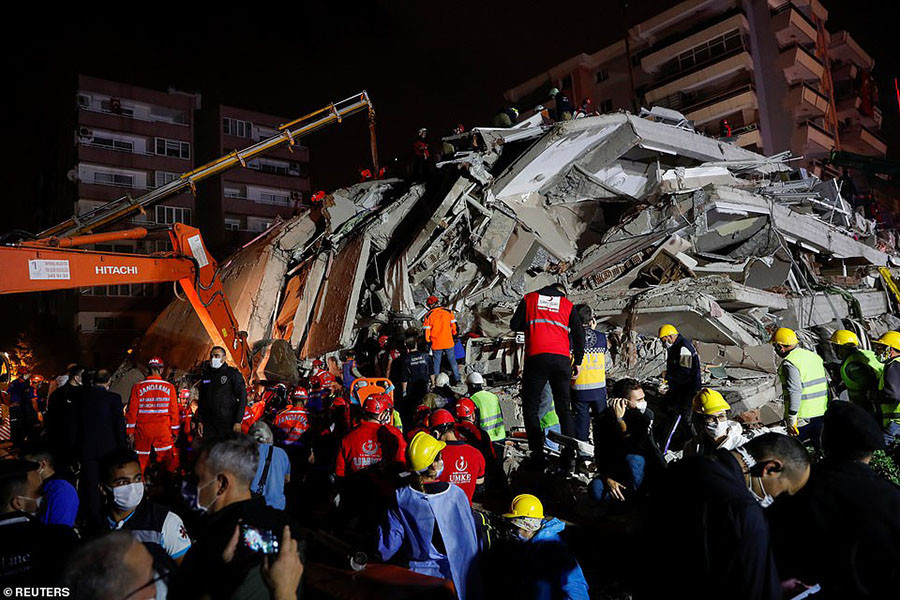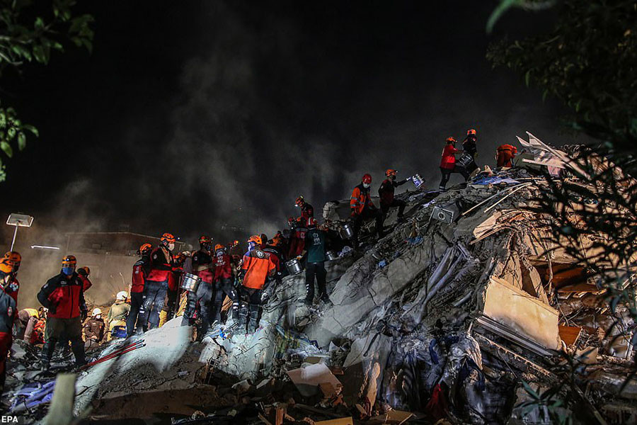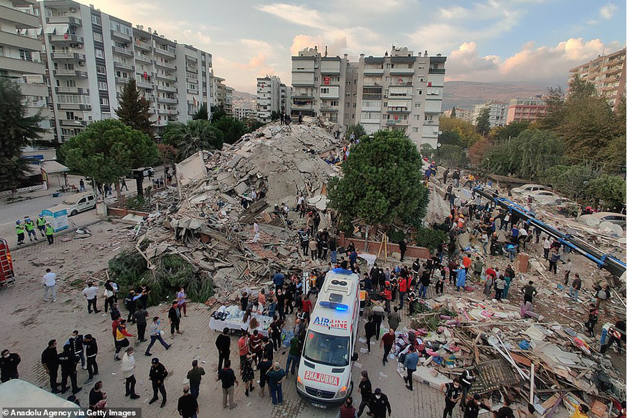 ANTD.VN - Lực lượng cứu hộ Thổ Nhĩ Kỳ suốt đêm qua 30-10 đã tìm kiếm tại các tòa nhà bị sập hoặc bị phá hủy trong trận động đất 7 độ richter, chạy đua với thời gian để tìm người sống sót. Dù quan hệ hai nước đang căng thẳng liên quan đến tranh chấp trên Địa Trung Hải, quan chức Hy Lạp và Thổ Nhĩ Kỳ đã cam kết hỗ trợ lẫn nhau trong khắc phục thiên tai này.