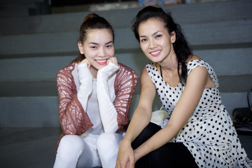Hai người đẹp cười rất tươi dù đã mệt nhoài sau buổi tập