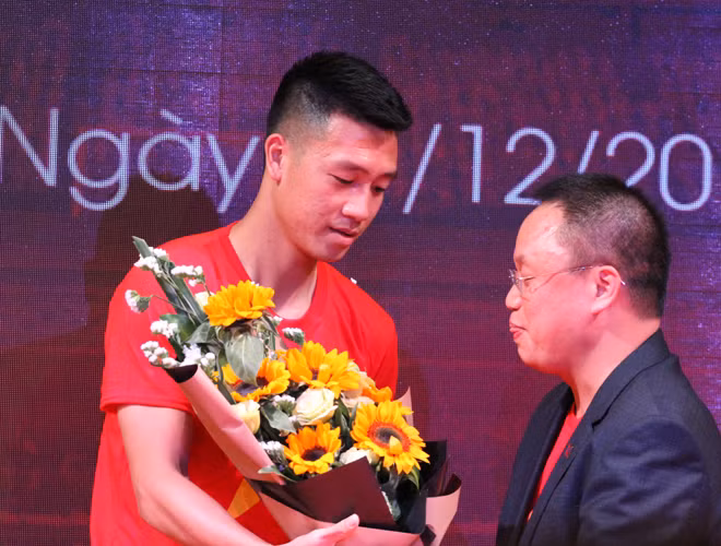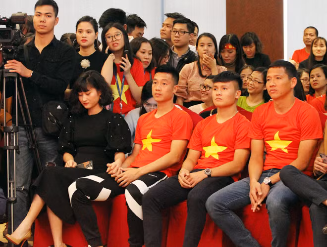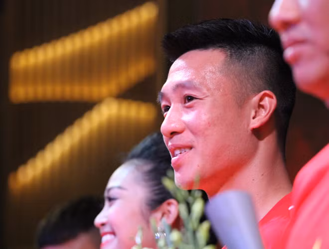 [ẢNH] Tiền vệ Huy Hùng nắm chặt tay bạn gái khi đi nhận thưởng 1 tỷ đồng
