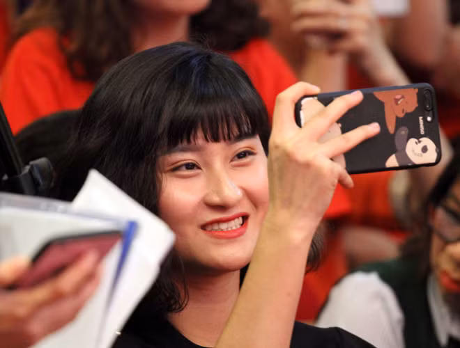 Quang Hải mượn máy ảnh chụp hình nữ MC xinh đẹp tại lễ nhận thưởng