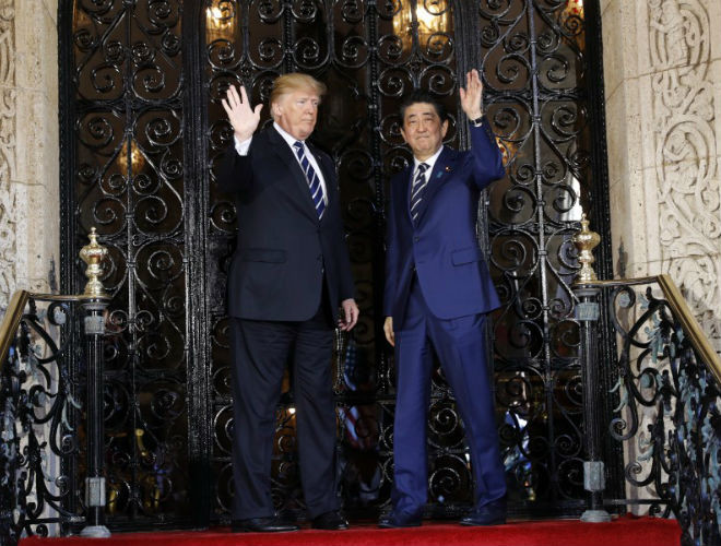 ANTD.VN - Thủ tướng Nhật Bản Shinzo Abe đã có chuyến thăm và làm việc tại khu nghỉ dưỡng Mar-a-Lago của Tổng thống Mỹ Donald Trump, Tại đây, hai nhà lãnh đạo đã thảo luận nhiều vấn đề quan trọng, trong đó nổi bật là vấn đề Triều Tiên và thương mại giữa hai nước.