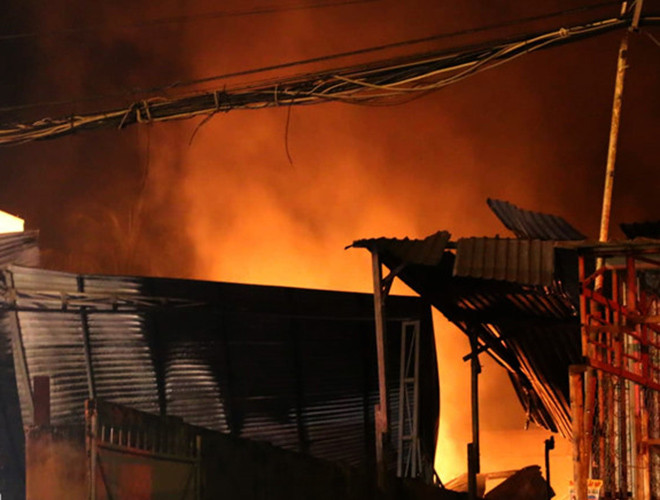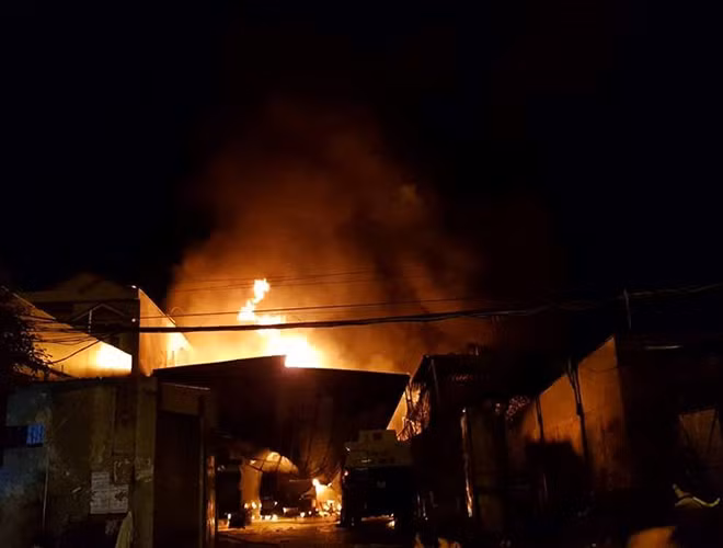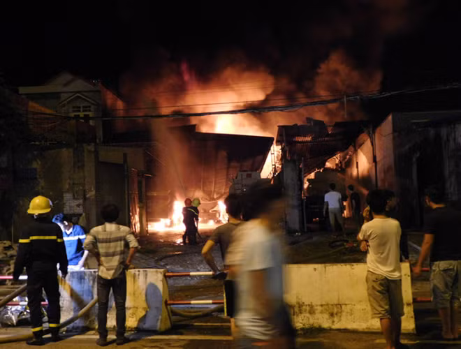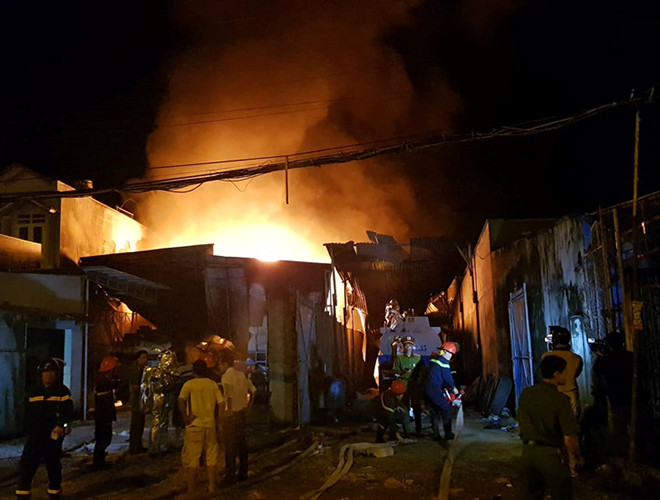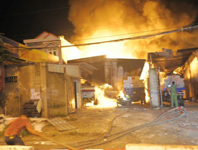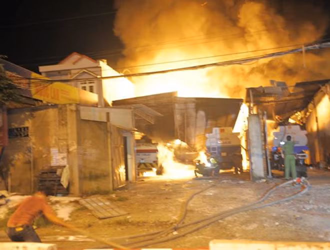 ANTD.VN - Tối 27-11, đám cháy dữ dội kèm theo nhiều tiếng nổ lớn đã phát ra từ bãi chứa nhiều xe bồn chở xăng dầu ở Nha Trang. Ngay lập tức, gần 100 cảnh sát cùng nhiều xe chữa cháy đã có mặt tham gia dập lửa. Đến 21h30 đám cháy bùng phát trở lại. Đến 22h, đám cháy cơ bản được khống chế. Hiện cơ quan chức năng vẫn đang tiếp tục điều tra làm rõ nguyên nhân vụ cháy.