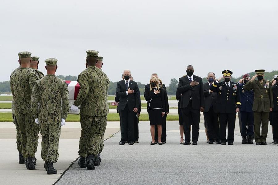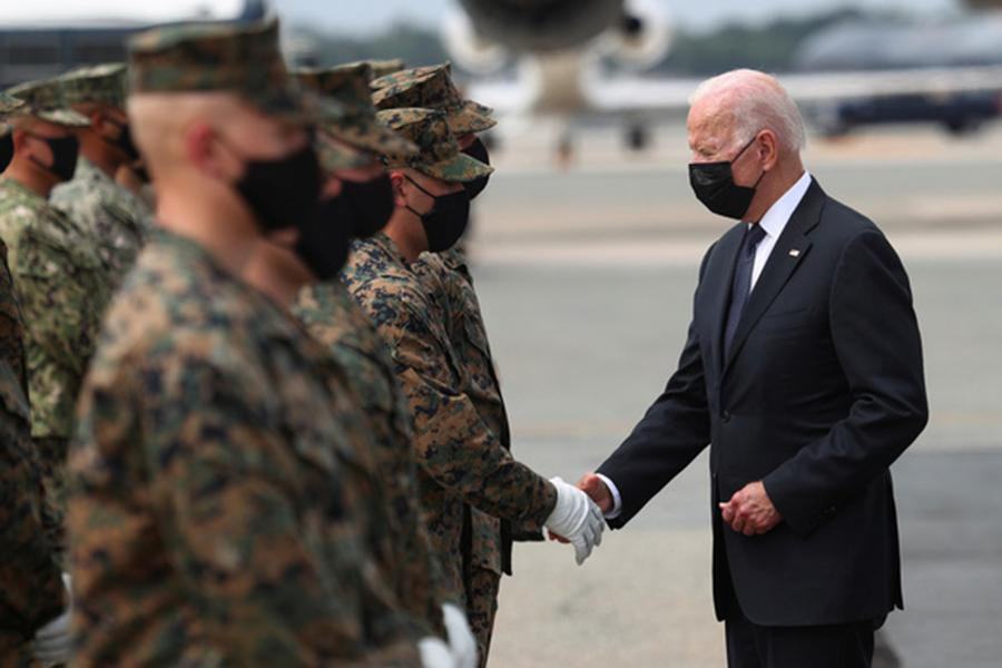 ANTD.VN - Vợ chồng Tổng thống Mỹ Joe Biden ngày 29-8 đã có mặt tại căn cứ không quân Dover dự lễ hồi hương thi thể 13 lính Mỹ thiệt mạng trong vụ khủng bố sân bay Kabul, Afghanistan. Trong chiến dịch di tản người đang mắc kẹt ở Kabul, có lẽ nỗi ám ảnh nhất đối với ông Biden là xảy ra thương vong trong lúc chỉ còn vài ngày là thời hạn rút quân kết thúc.
