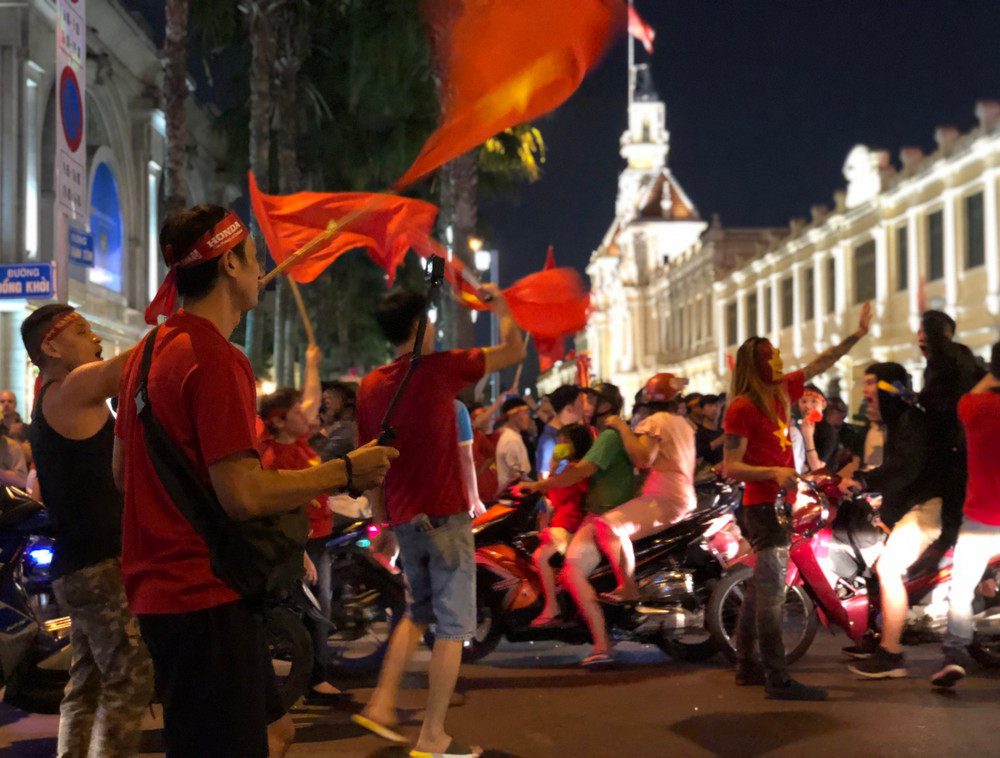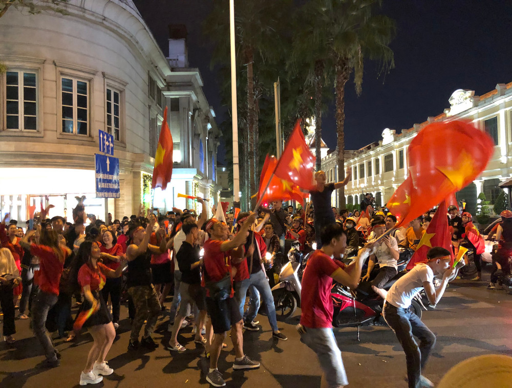 [ẢNH] Nhìn lại 1 đêm trắng người Hà Nội ăn mừng chiến thắng lịch sử của bóng đá Việt Nam