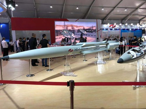 ANTD.VN - Tại Triển lãm Hàng không quốc tế Chu Hải 2018, Trung Quốc đã trưng bày nguyên mẫu tên lửa hành trình đối đất siêu thanh mang tên HD-1 dành cho xuất khẩu.