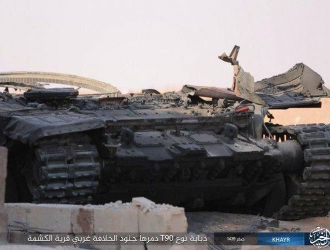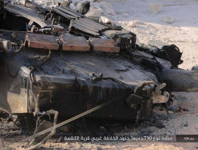 [ẢNH] Tử chiến tại Al-Bukamal, IS thiêu rụi xe tăng hiện đại T-90A của Syria