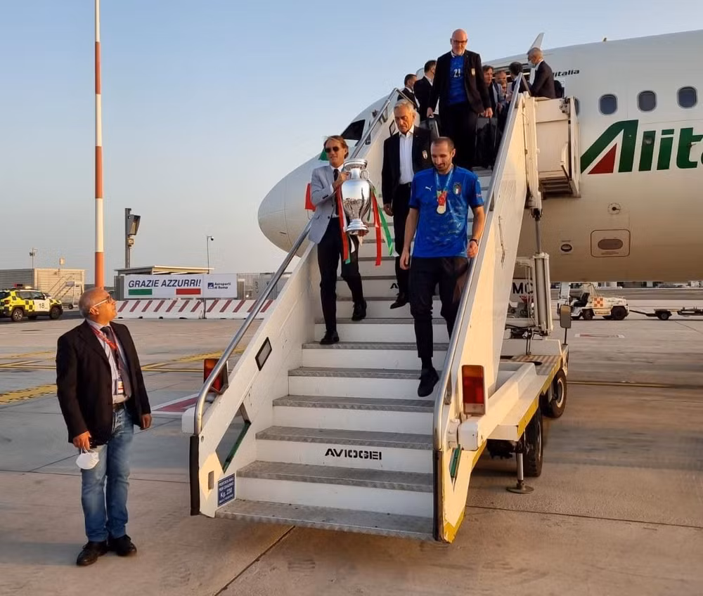 ANTD.VN - Ít giờ sau khi đánh bại ĐT Anh trên chấm luân lưu 11m để giành ngôi vô địch, ĐT Italia đã trở về Rome cùng chiến quả EURO 2020 trên tay.