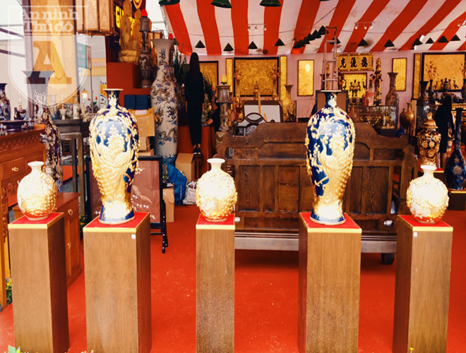 ANTD.VN - Những bộ bình gốm tinh xảo trị giá hàng trăm triệu đồng đến từ Bát Tràng đang được trưng bày tại Hội chợ Văn hóa phẩm Phật giáo, sự kiện nằm trong khuôn khổ Đại lễ Vesak Liên hợp quốc 2019.