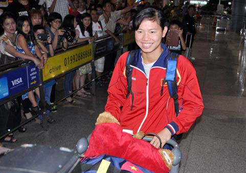 Ánh Viên về nước trong sự chào đón nồng nhiệt của người hâm mộ