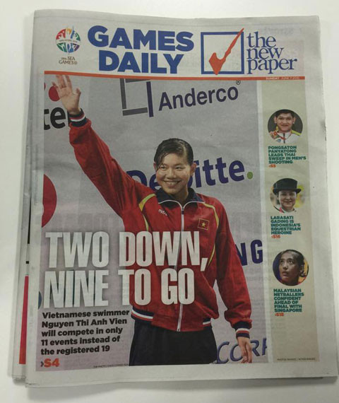 Ánh Viên được lên trang nhất báo Singapore