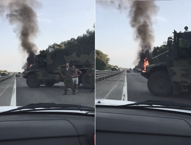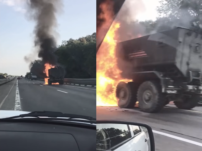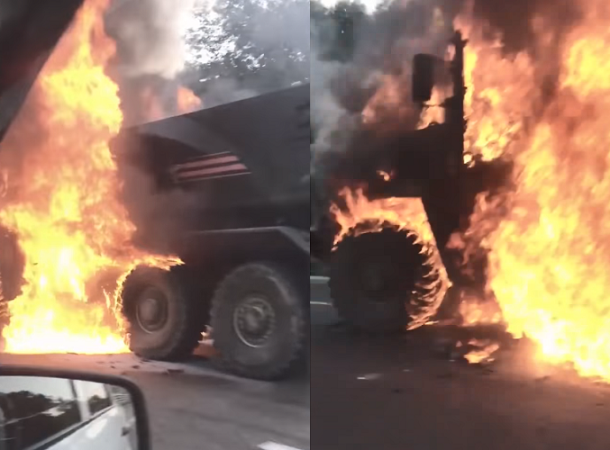 [ẢNH] Xe bọc thép hạng nặng Typhoon-U của Nga cháy dữ dội trên đường