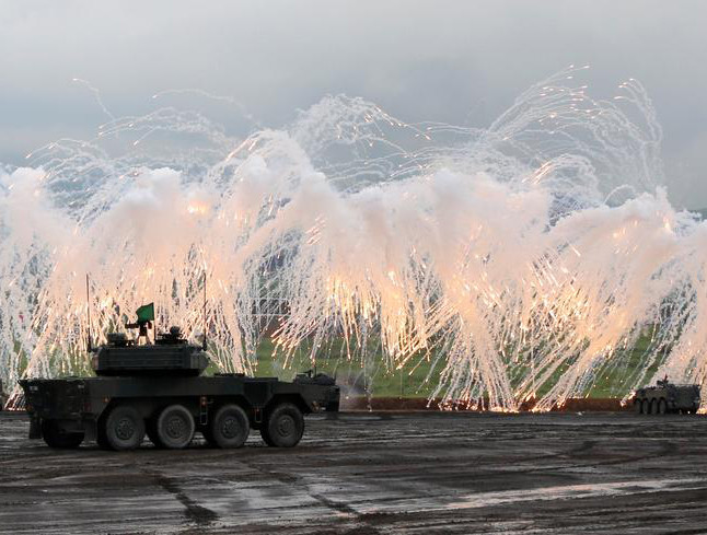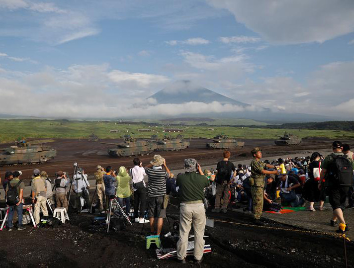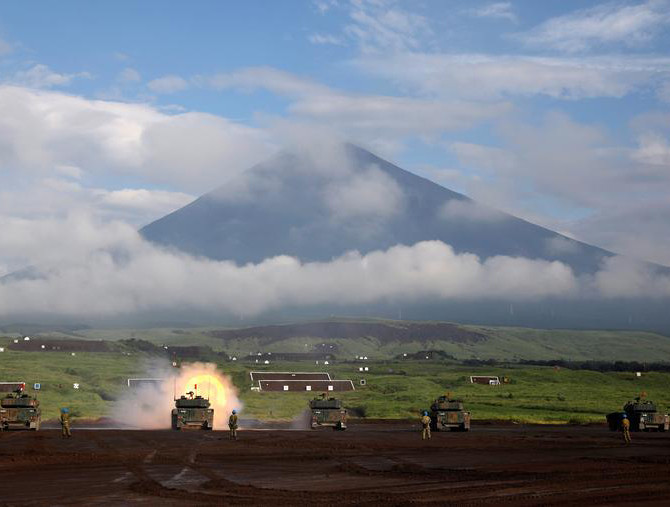ANTD.VN - Các xe tăng cùng xe bọc thép, pháo binh của Lực lượng phòng vệ mặt đất Nhật Bản đã tham gia cuộc tập trận thường niên gần núi Phú Sĩ. Tại đây, người xem đã được chứng kiến những màn khai hỏa của các vũ khí, khí tài tối tân của quân đội Nhật Bản.