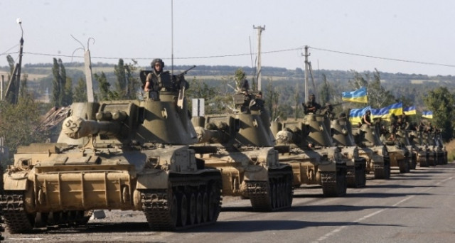 [ẢNH] Xe tăng Ukraine rầm rập tiến về cảng Mariupol khi căng thẳng gia tăng
