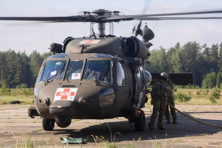 ANTD.VN - Trực thăng HH-60M của lục quân Mỹ đậu ở bãi đỗ tư nhân bị hỏng phần đuôi sau cú va chạm với xe trượt tuyết của người dân.