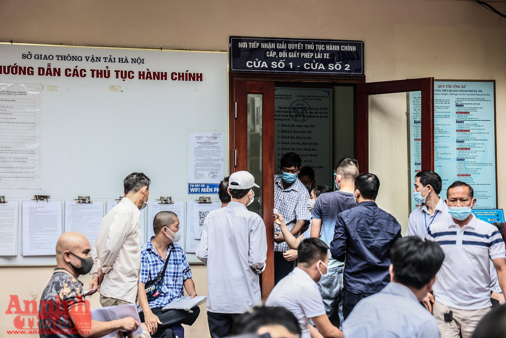ANTD.VN - Chiều 23/9, tại Phòng Quản lý phương tiện và người lái (Sở GTVT Hà Nội) tại phố Cao Bá Quát, khá đông người dân đến làm thủ tục cấp đổi giấy phép lái xe. Đơn vị đã bố trí ghế ngồi chờ theo quy định phòng dịch tuy nhiên do người dân đến quá đông nên việc đảm bảo khoảng cách tối thiểu 2m rất khó để thực hiện. Trong bối cảnh dịch bệnh vẫn còn ở mức nguy cơ cao, rất cần đẩy mạnh việc ứng dụng CNTT, hẹn giờ đến làm thủ tục để tránh tập trung đông người...