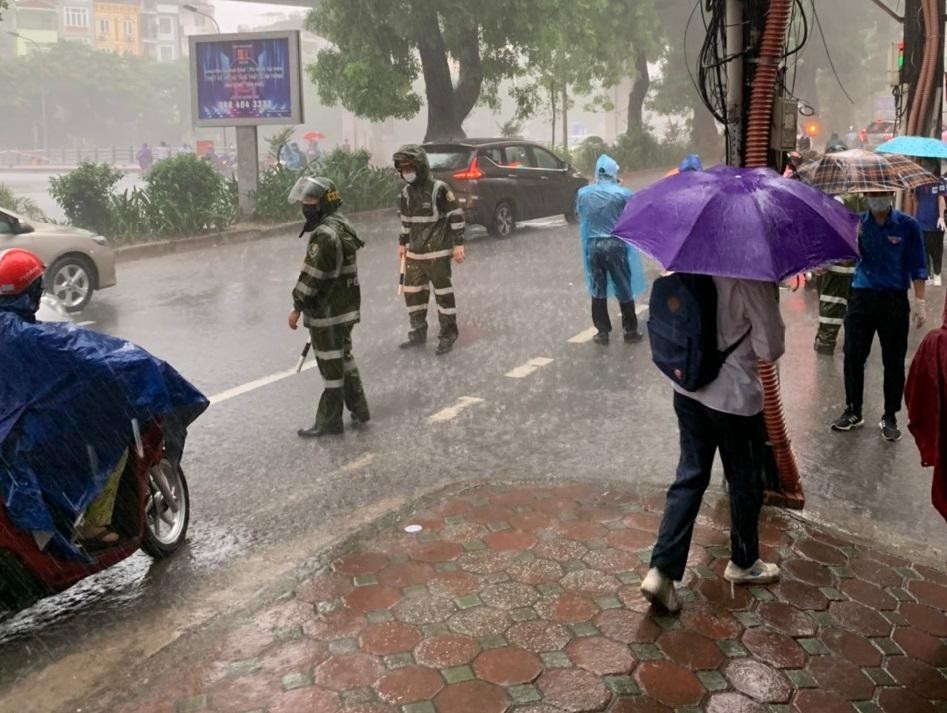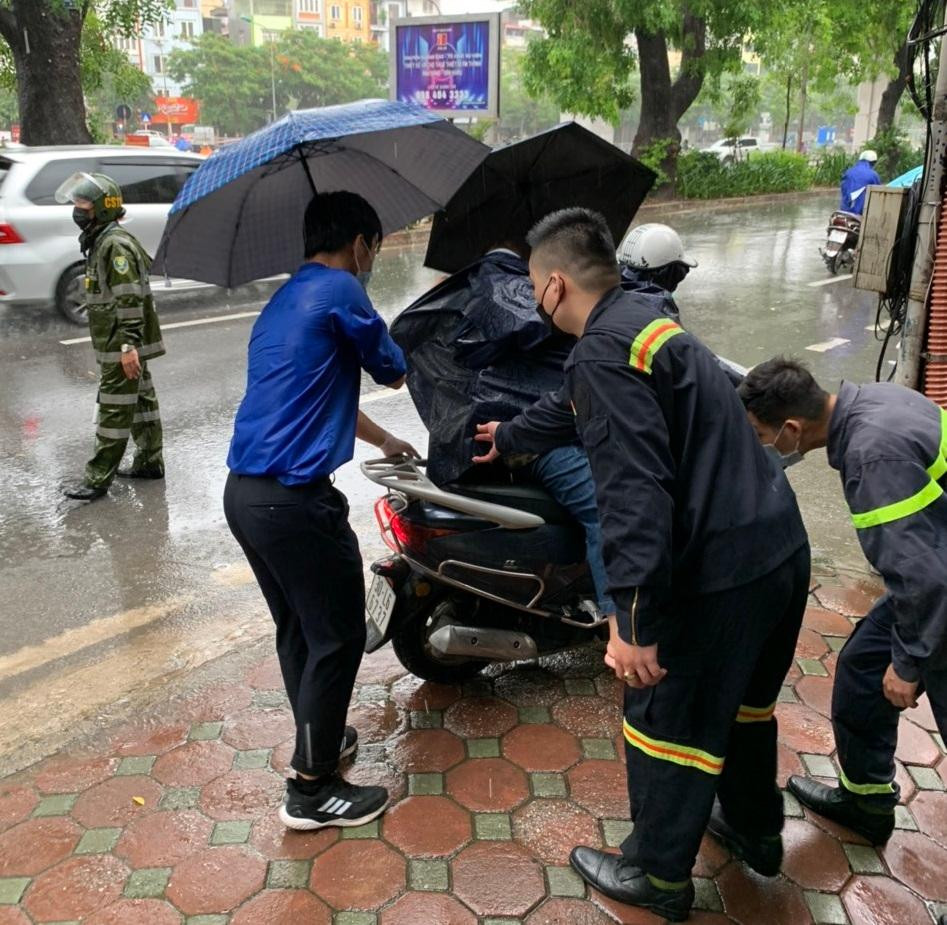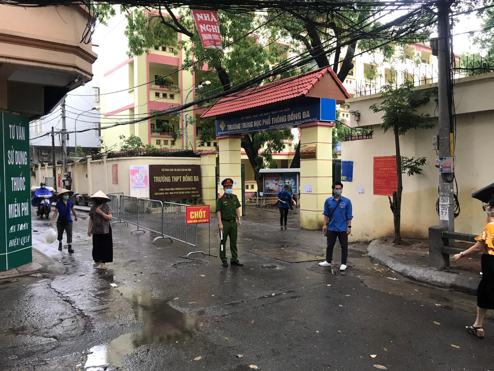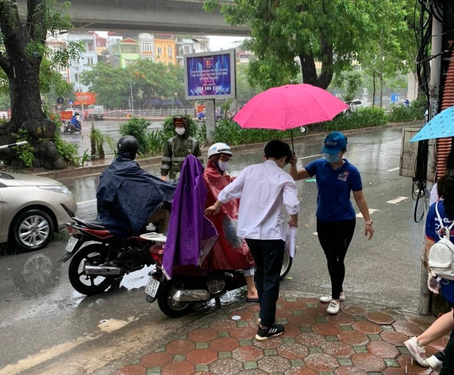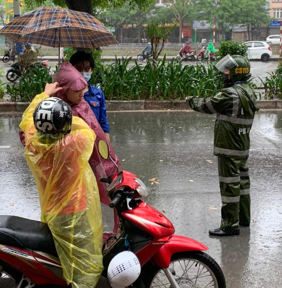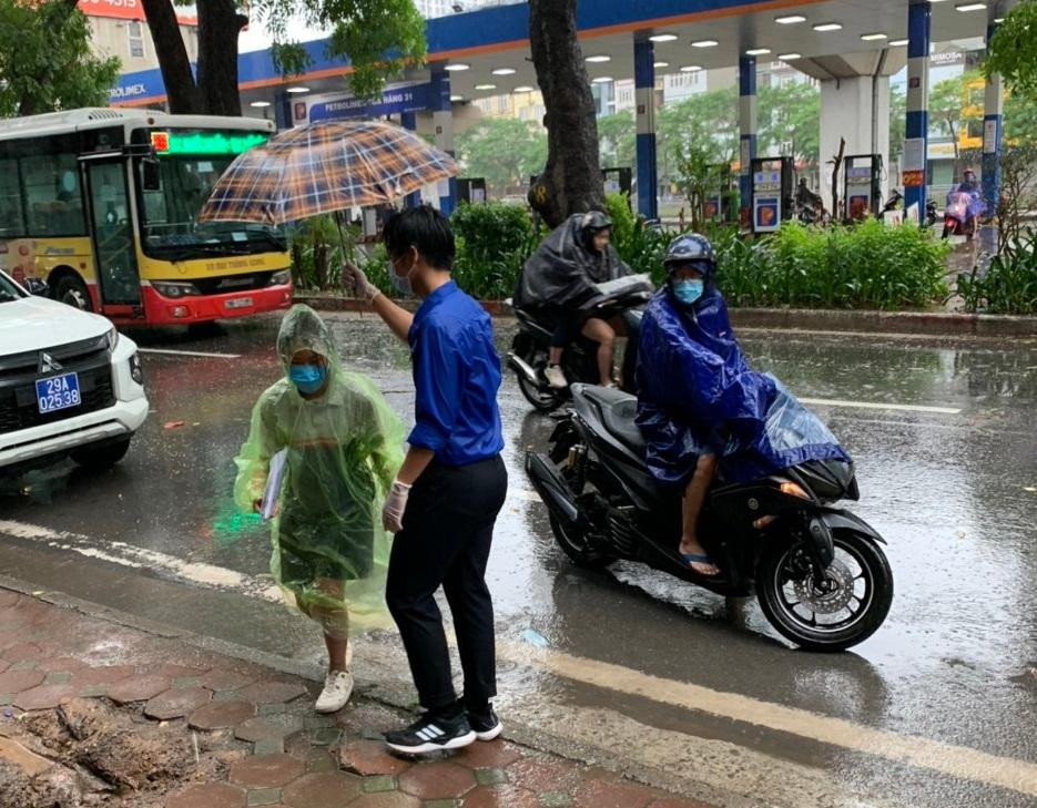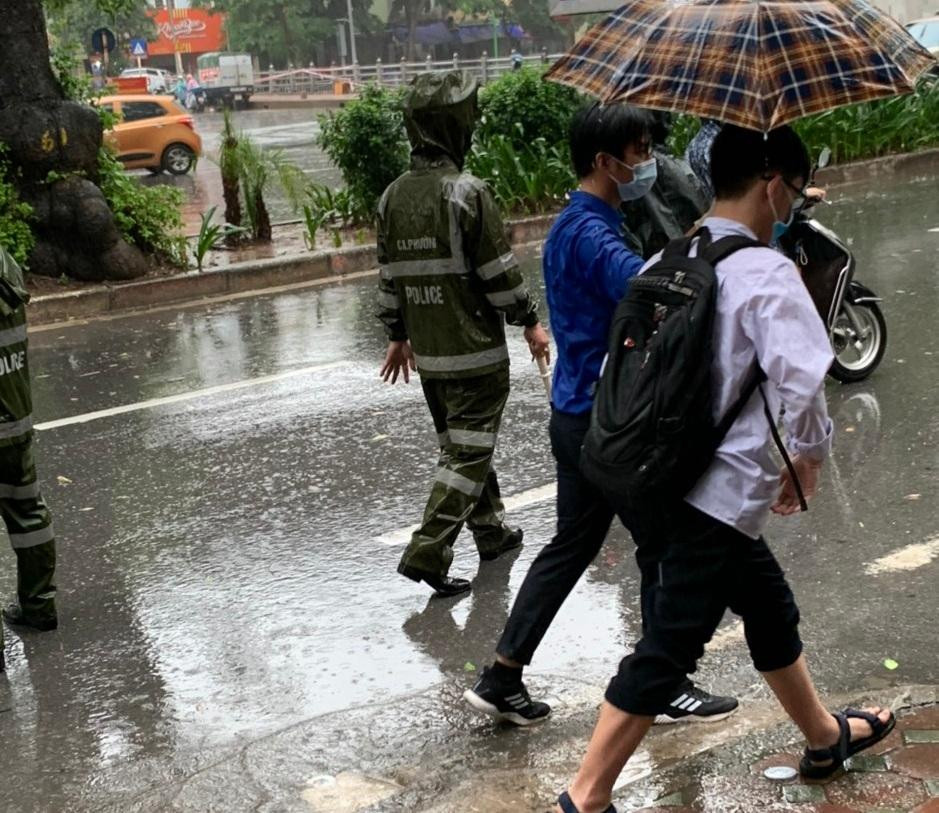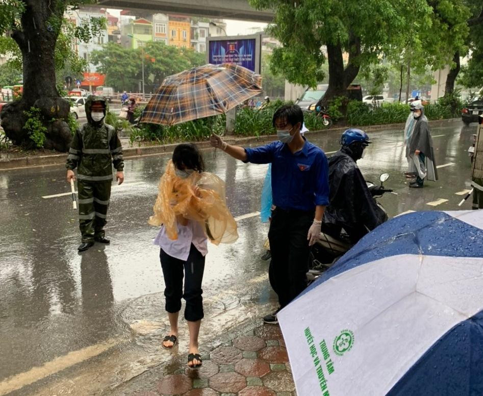 ANTD.VN - Trong cơn mưa lớn, để các em học sinh không bị ướt khi di chuyển vào khu vực phòng thi, các tình nguyện viên, đoàn viên thanh niên và lực lượng Công an quận Đống Đa đã nhường áo mưa, ô cho các em học sinh.