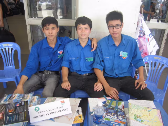 Bàn tư vấn của đội sinh viên tình nguyện tiếp sức mùa thi 2013 đến từ trường